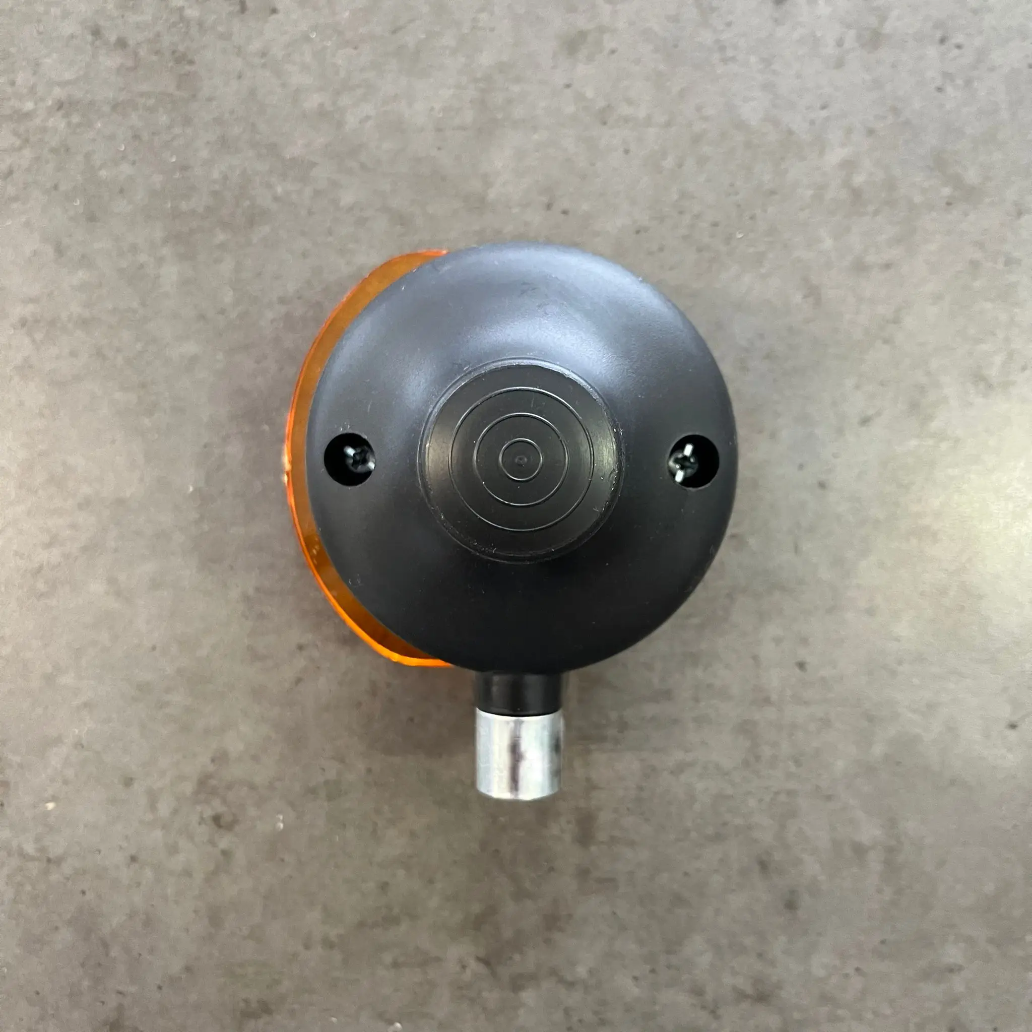 Přední blinkr (směrovka) s oranžovým krytem, navržený pro držák blinkrů s průměrem 10 mm. Vyrobeno z odolného a kvalitního PVC, které zajišťuje dlouhou životnost a spolehlivost.