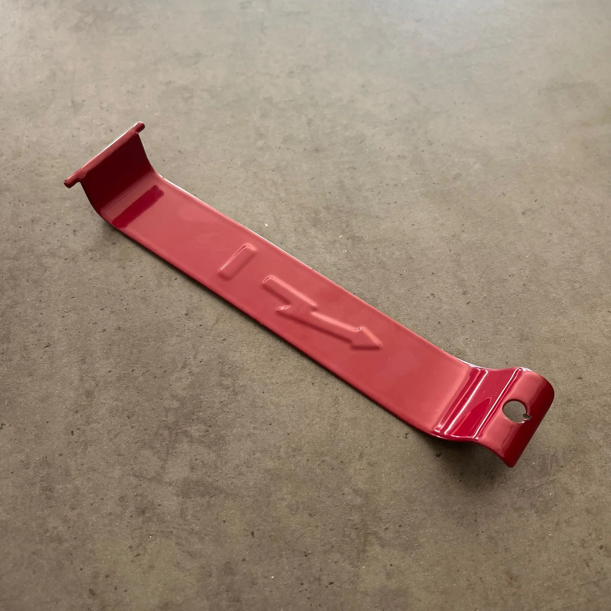 Držák baterie s označením MÍNUS na motocykl Jawa. Díl je opatřen červeným lakem, který zajišťuje ochranu před vnějšími vlivy a korozí. Držák je vyroben z kvalitního plechu v České republice.