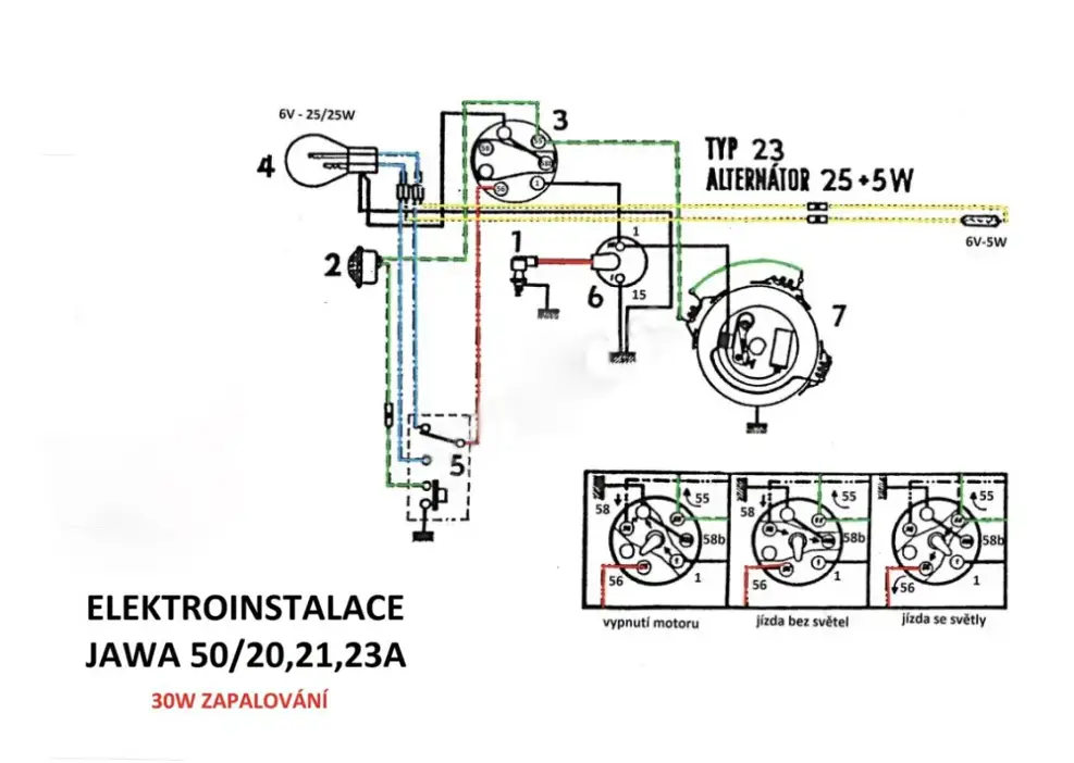 Elektroinstalace motocyklu Jawa se skládá z několika klíčových prvků, které společně tvoří komplexní systém:
