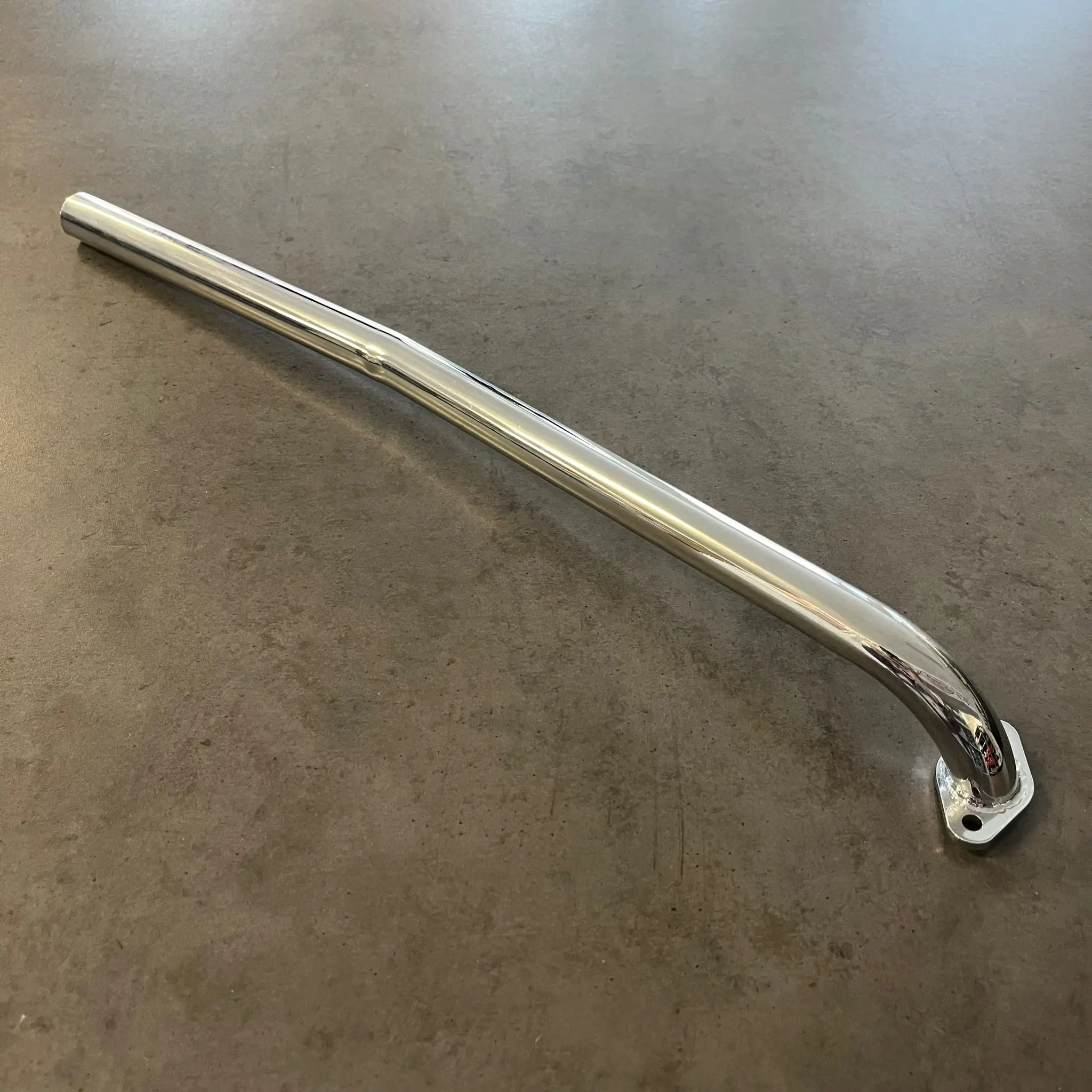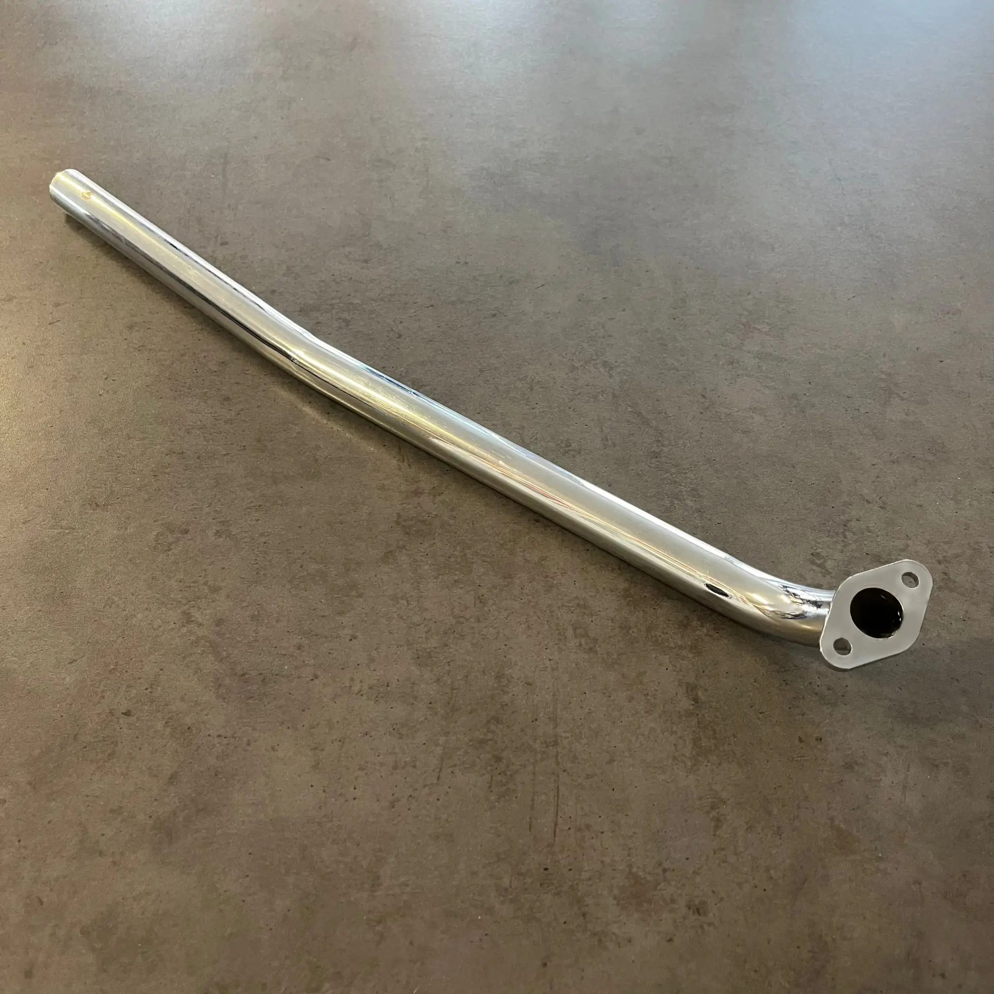 Chromované koleno tlumiče výfukových plynů. Chrom zajišťuje krásný lesklý povrch a chrání koleno proti korozi a dalším vnějším vlivům.