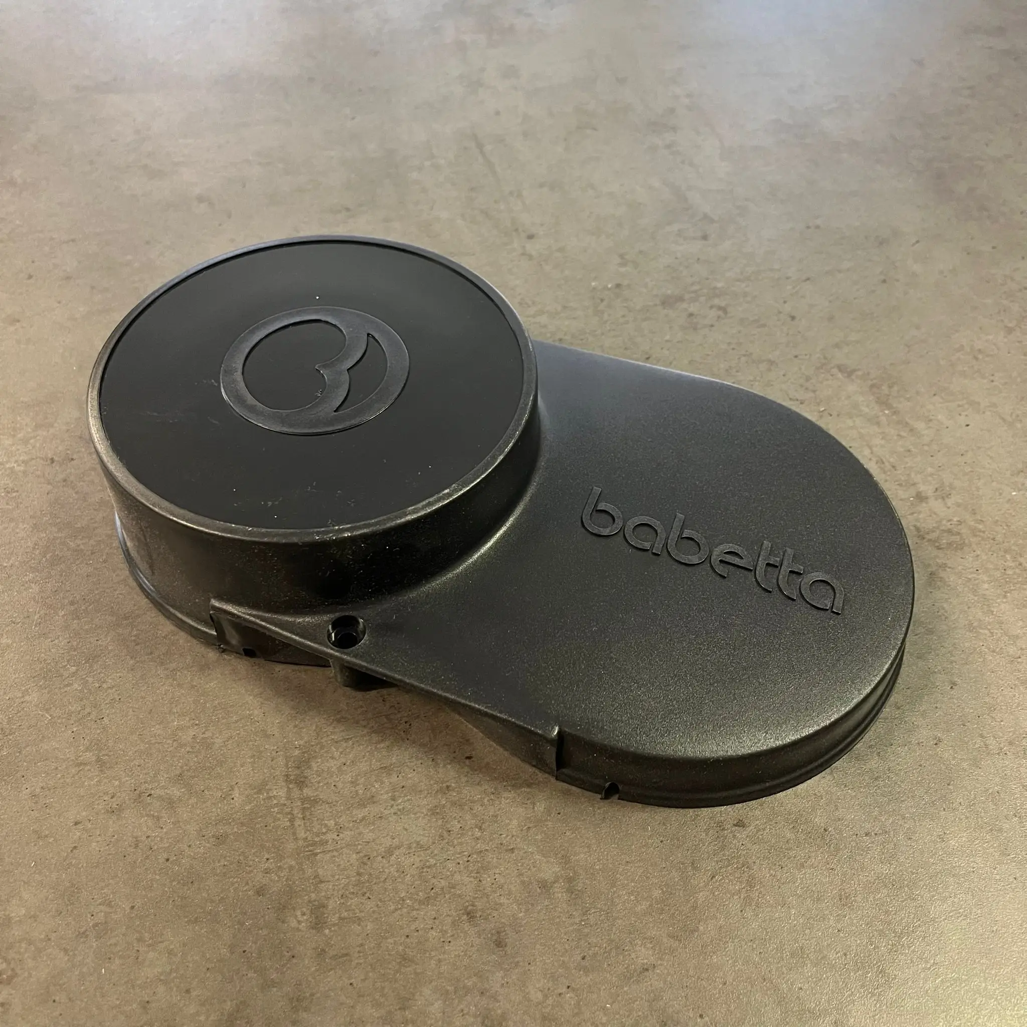 Plastový kryt spojky. Typický černý kryt motoru na Babettu s logem a nápisem Babetta.
