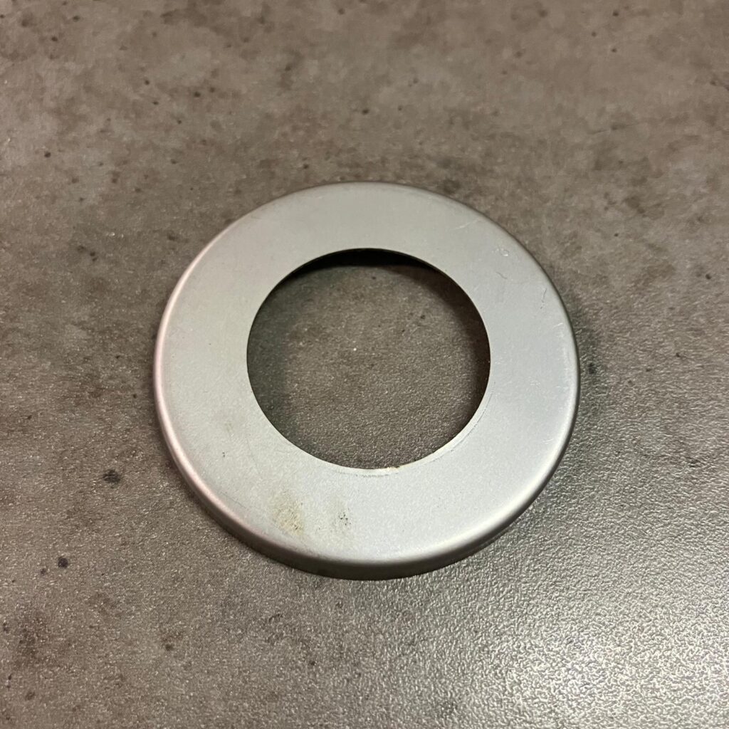 Vnitřní miska ložiska řízení na motocykl Jawa Pionýr. Povrchová úprava v zinku chrání před korozí a dalšími vnějšími vlivy.
