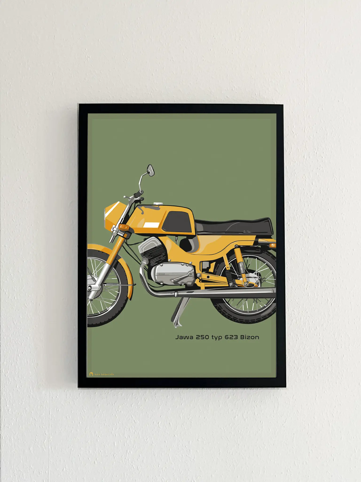 Představte si, jaký dojem by udělal tento nádherný MOTOPLAKÁT – BIZON na stěně vaší dílny, bytu nebo kanceláře. Tento výjimečný produkt není jen obyčejným plakátem, je to kousek historie a vášeň pro motocykly zachycená v umělecké podobě. Plakát vznikl v autorské dílně Malá bulgarinka v rámci projektu Motoplakáty.