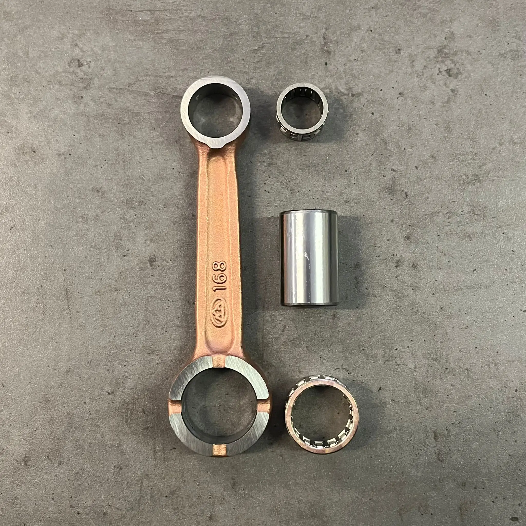 Ojnice pro motocykly Pionýr 20, 21, 23 – kompletní sada ojnice zahrnuje samotnou ojnici, spodní jehlovou klec, spodní ojniční čep a jehlovou klec pro pístní čep. Pístní čep není součástí balení, avšak lze jej zakoupit samostatně.