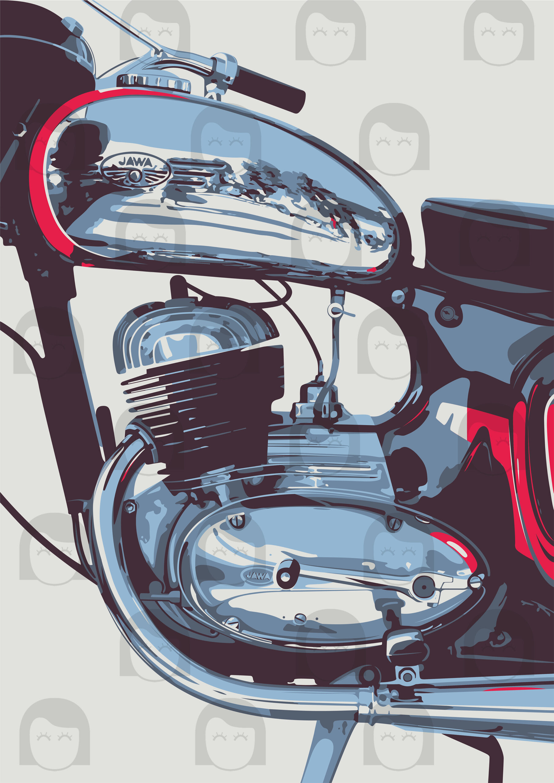 Představte si, jaký dojem by udělal tento nádherný MOTOPLAKÁT – MOTOR JAWA 250 PANELKA na stěně vaší dílny, bytu nebo kanceláře. Tento výjimečný produkt není jen obyčejným plakátem, je to kousek historie a vášeň pro motocykly zachycená v umělecké podobě. Plakát vznikl v autorské dílně Malá bulgarinka v rámci projektu Motoplakáty.
