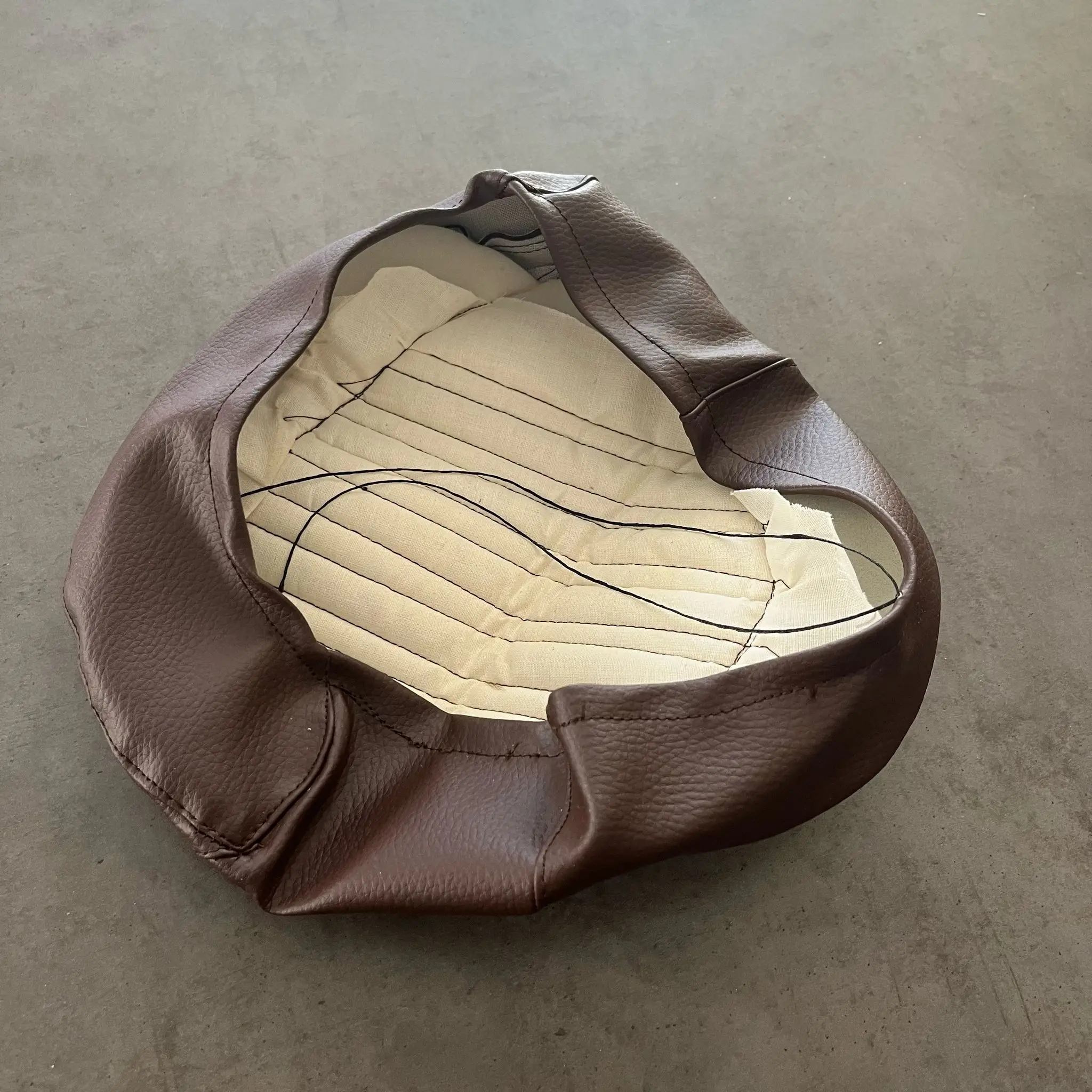 Potah sedla na motocykl Jawetta a Stadion. Díl je vyroben z kvalitní tmavě hnědé koženky. Potah je prošitý elegantní hnědou nití dle originálu. Uchycení potahu je na šňůrku.